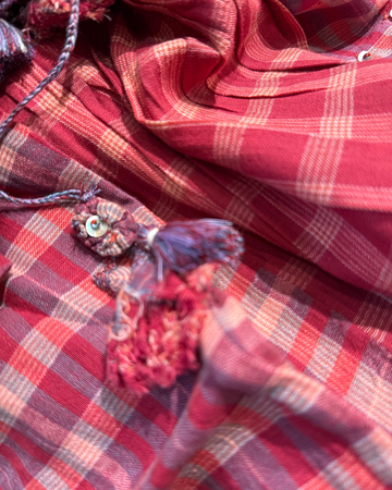 Traditional Gamcha weaving employs coarse cotton yarns in plain-weave structures, creating highly absorbent, quick-drying fabric perfect for multiple uses. The signature red-and-white checks, achieved through careful yarn arrangement, provide visual appeal while maintaining functionality. Hand-spun cotton and natural dyes traditionally created Gamchaâs characteristic appearance, though contemporary versions may use mill yarn while maintaining traditional patterns and techniques.