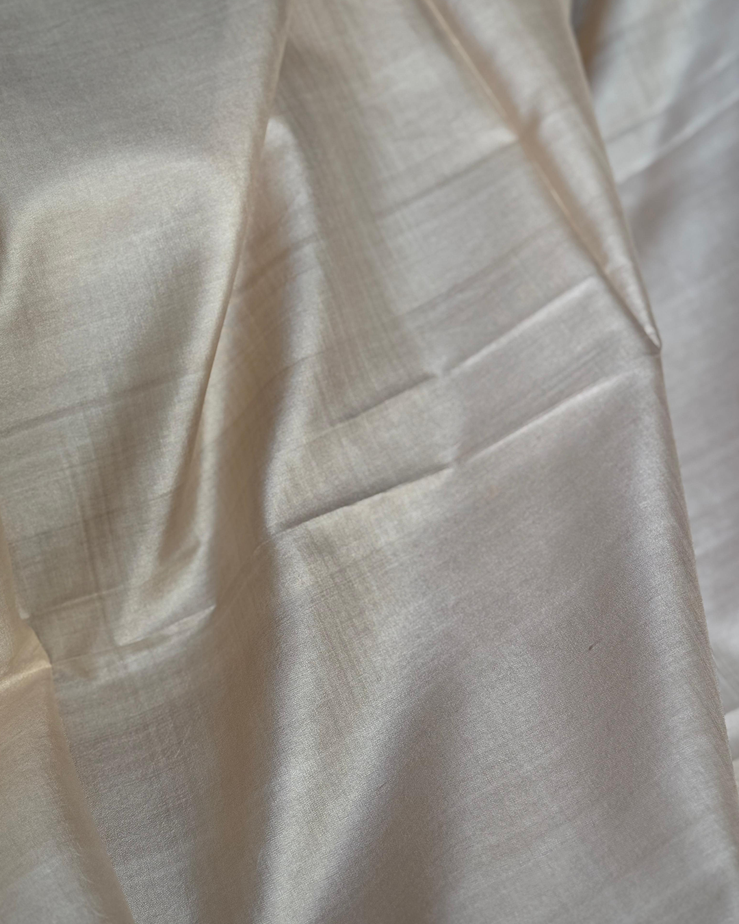 Tussarâs appeal lies in its wild authenticity: each thread carries the essence of Indiaâs forests. The fabricâs natural golden colourâoften called âliquid goldââneeds no artificial enhancement. Its thermal properties provide coolness in summer and warmth in winter, while the slight stiffness creates beautiful drape and structure.