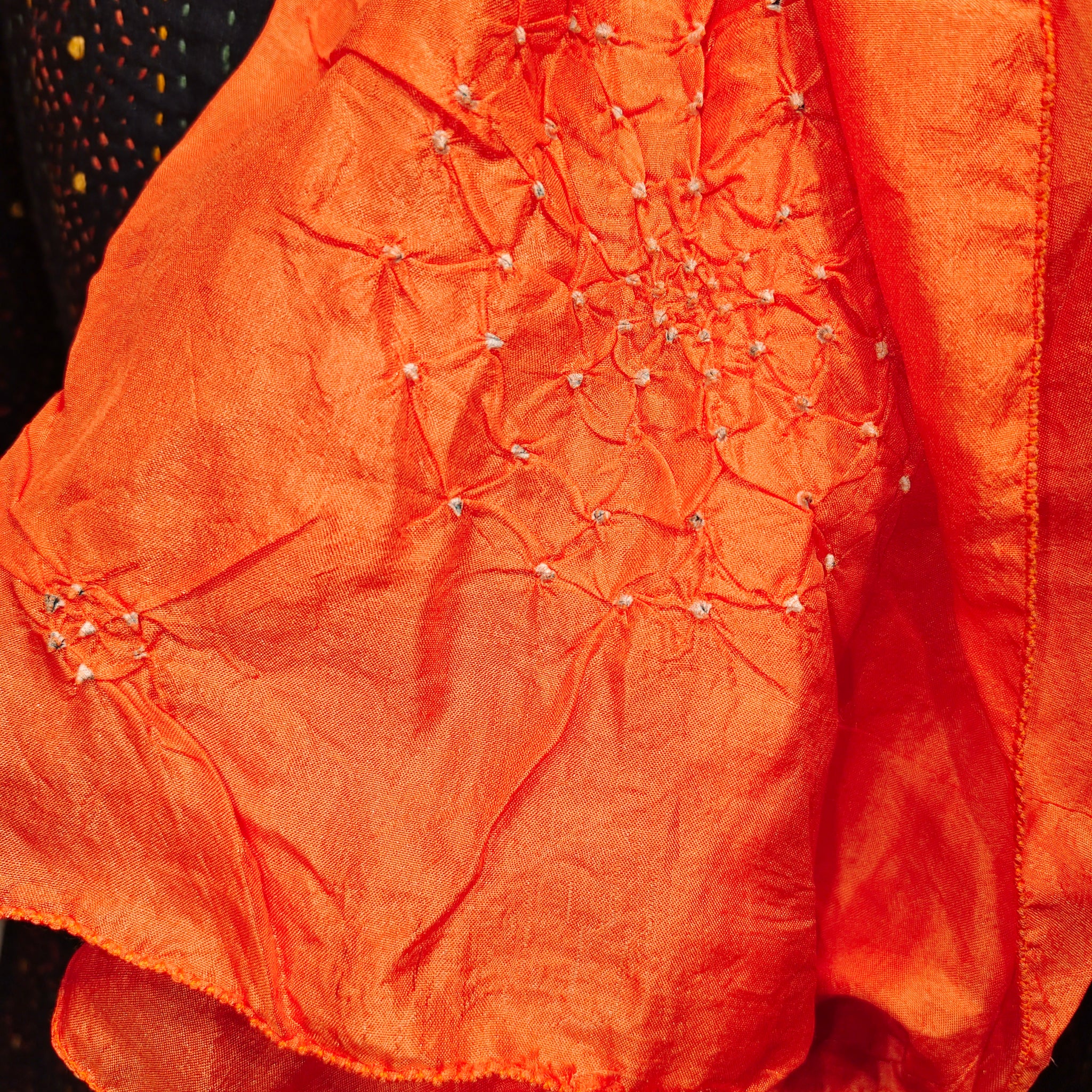 Bandhaniâs cultural significance permeates Rajasthani societyâbrides traditionally wear red and yellow Bandhani odhnis, while different patterns mark various life celebrations. Each piece tells stories through colour symbolism: red for fertility and vigour, yellow for prosperity and spring, black for transformation, and blue for Krishnaâs divine presence.