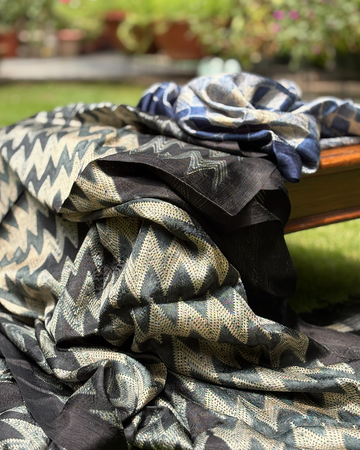 Kotpad weaving springs from the tribal heartlands of Koraput district in Odisha, where the Mirgan community has practiced this ancient craft for over 600 years. It embodies the philosophy of living in harmony with nature. These textiles were woven for the Bhatra, Oraon, and other tribal communities, and were often used in rituals, weddings, and festivals.