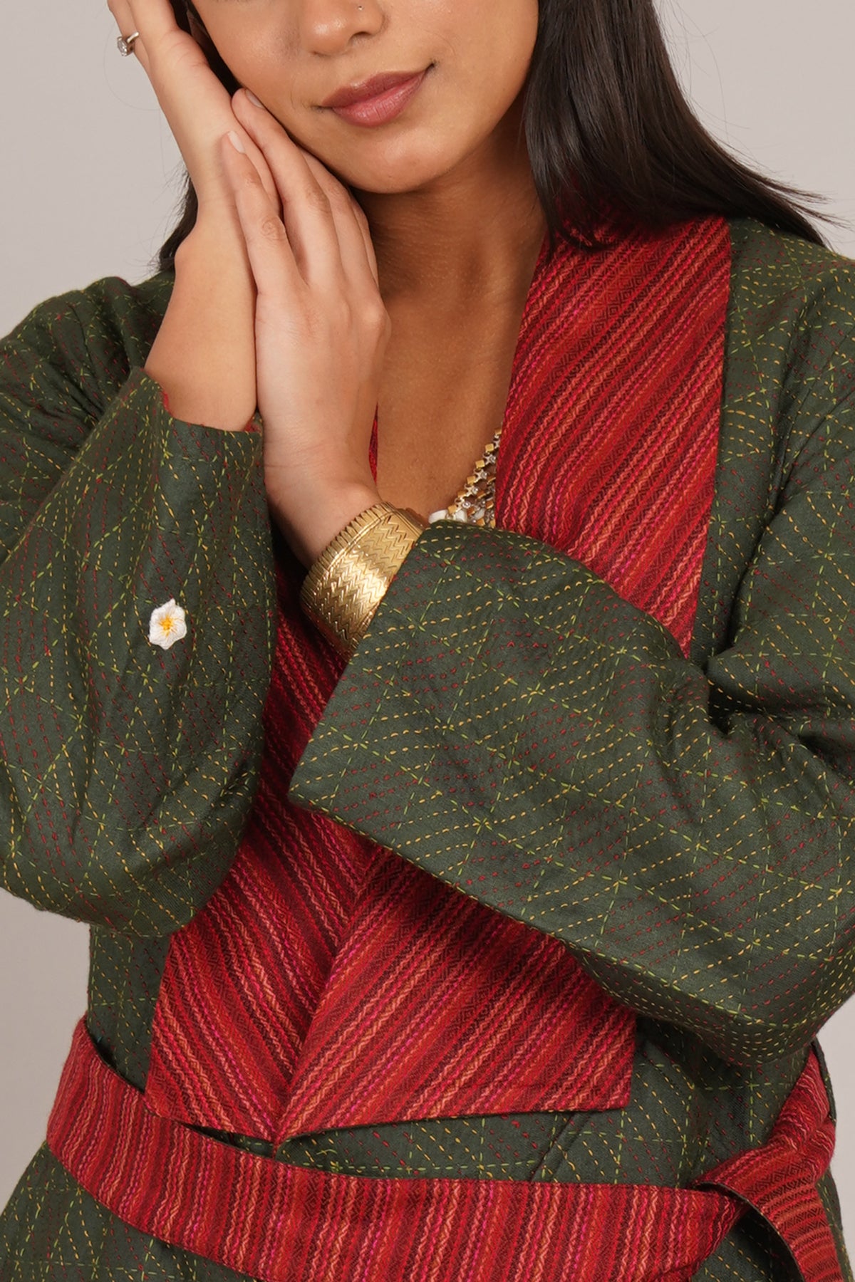 Green Kantha Red Woollen Short Jacket