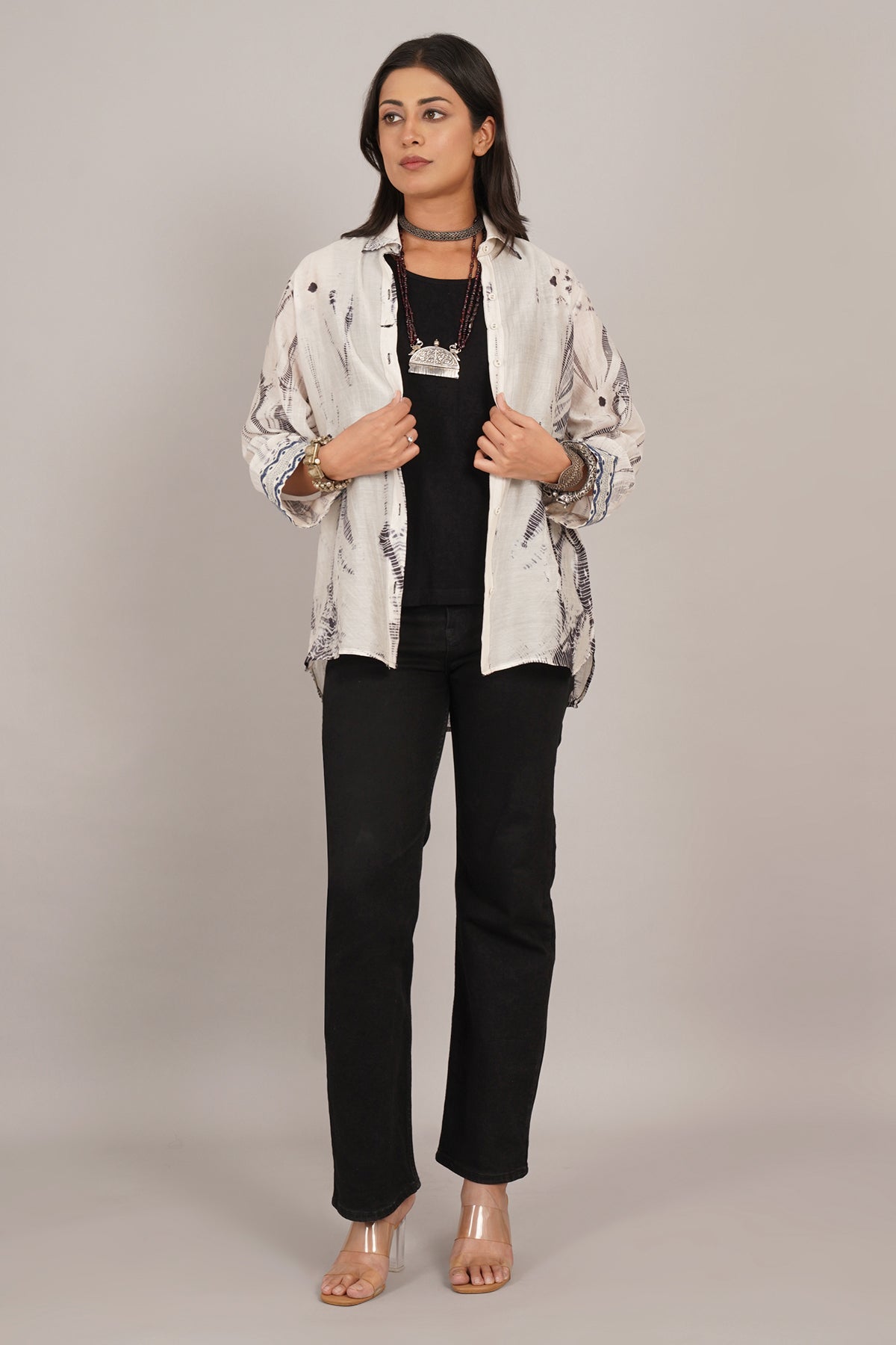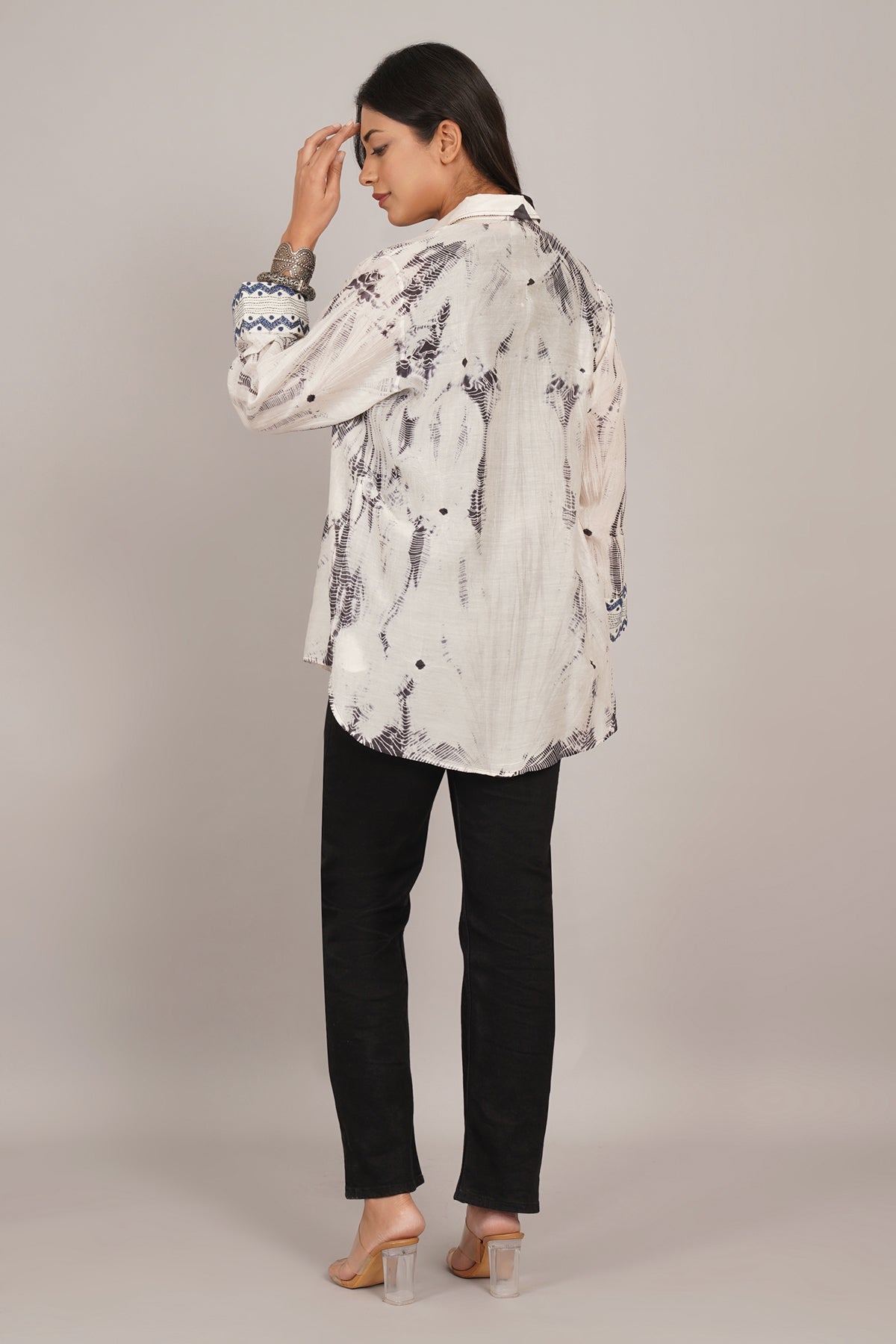 White Grey Shibori Tunic Shirt