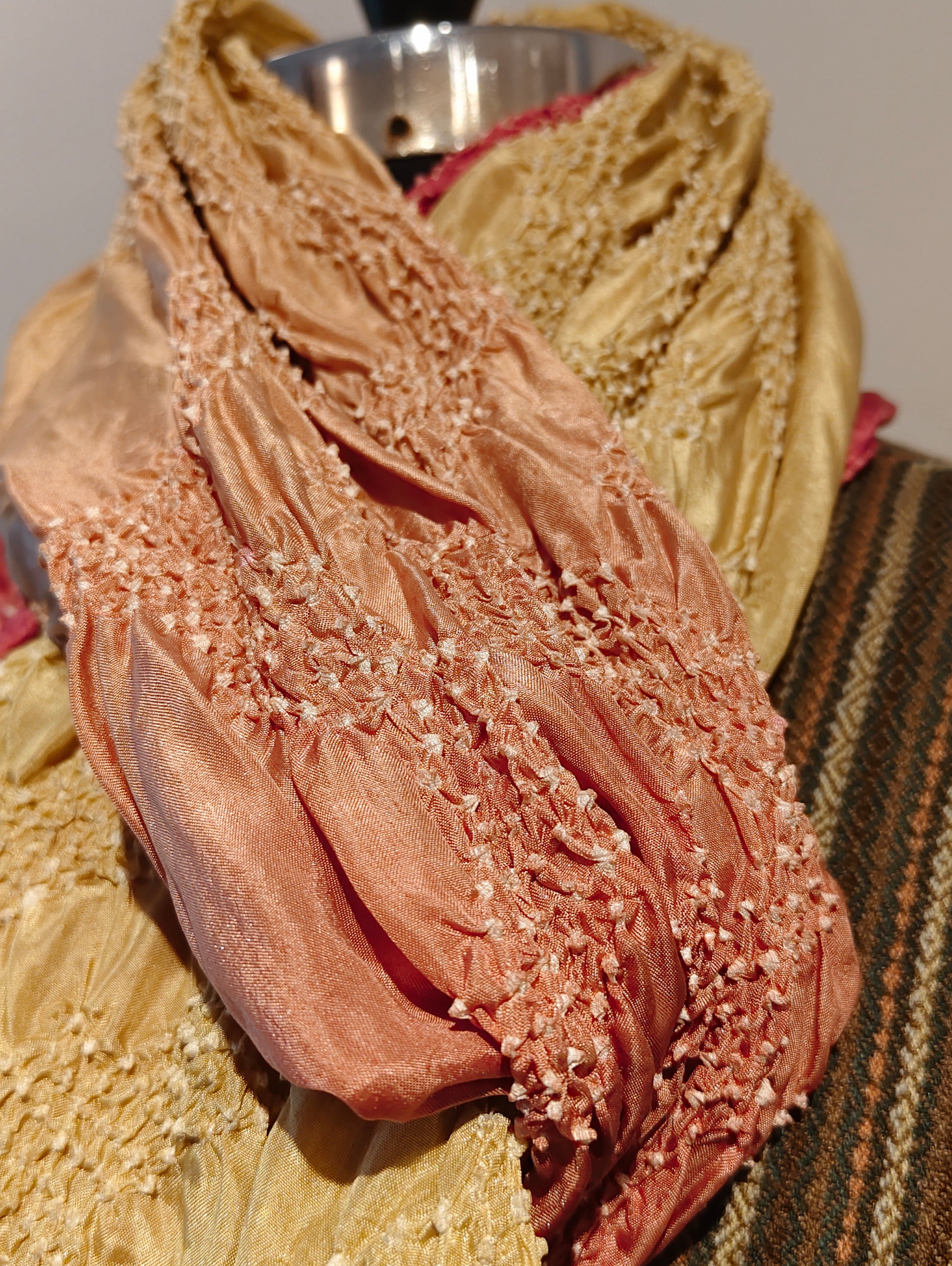 - About Bandhani:- Bandhani’s tie-resist dyeing relies on micro-binding precision. Fabric portions are tied using fine thread tension calibration to resist dye uptake. Sequential dye baths form layered chromatic fields, with residual irregularities defining authentic manual control.